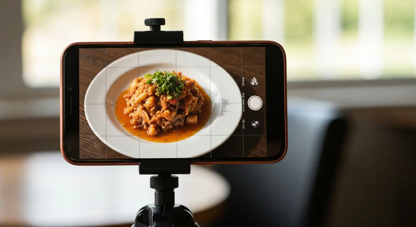 Para transformar cliques em pedidos, eu recomendo focar na iluminação natural. Posicione seu prato perto de uma janela e deixe a luz suave revelar as cores verdadeiras dos alimentos. Fotos escuras ou com flash direto passam uma impressão de descuido, o que afasta quem busca uma experiência gastronômica de qualidade.